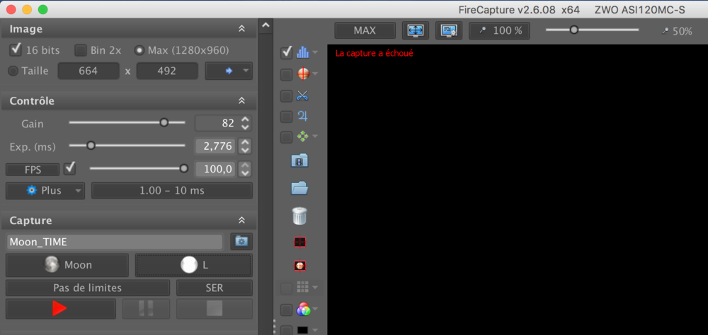 With Firecapture 2.6 I managed to get 55 fps on a USB 3 connection but no gamma adjustment. With 2.7 I get gamma adjustment but only 36 fps. (Mac) Release Notes How to create shortcuts Linux version will be available at a later stage. I currently don't have plans to provide a Win x86 version. Thanks for testing and please be gentle with the. If you haven't already done it, install libusb for FireCapture on macOS to work with cameras. The best way to do it is through Homebrew. Hi, I want to use FireCapture for Planetary/Lunar imaging on StellarMate OS. It runs, but slows the whole system to a crawl. After an action I have to wait a.